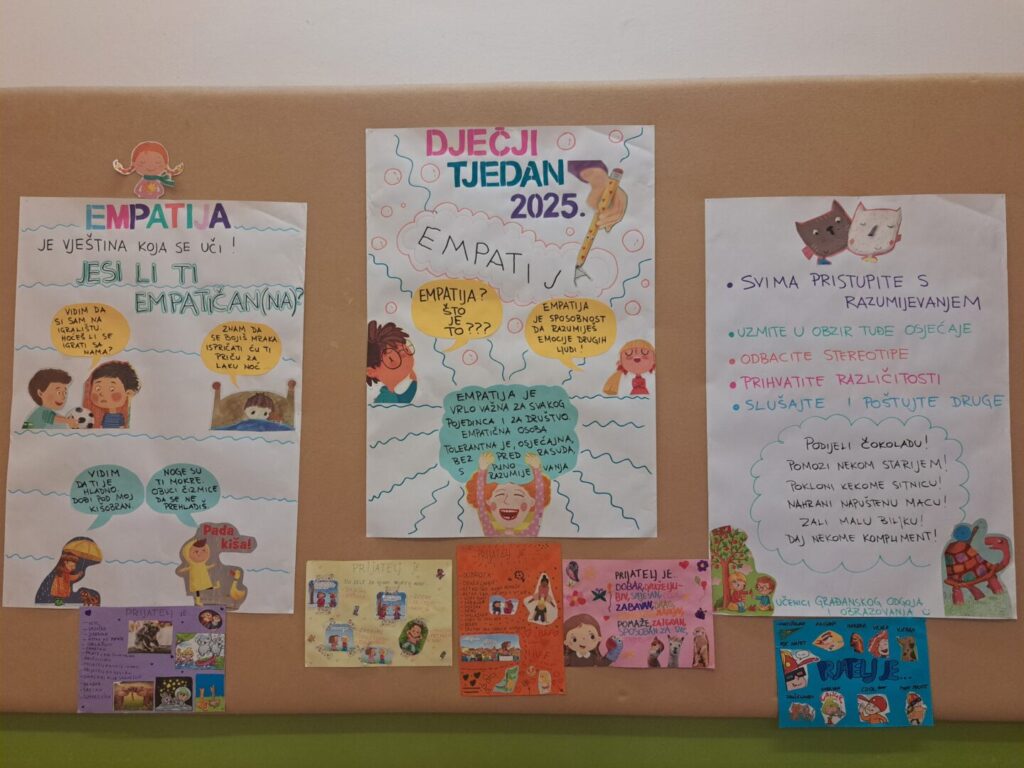 Pravi prijatelji i razumijevanje tuđih osjećaja glavna su tema na panou u holu OŠ Tar-Vabriga povodom Dječjeg tjedna. Kroz sate Građanskog odgoja i obrazovanja, učenici su s učiteljicom Marinom Dželalijom Jakominić učili o važnosti empatije – sposobnosti da se stavimo u tuđe cipele.