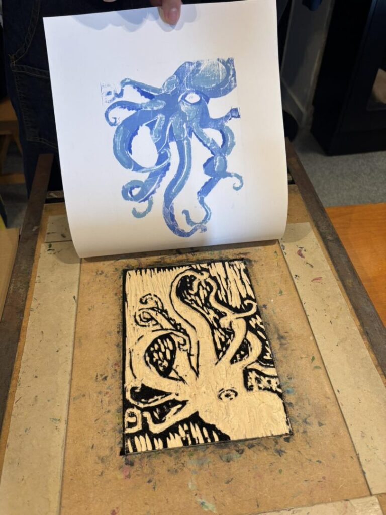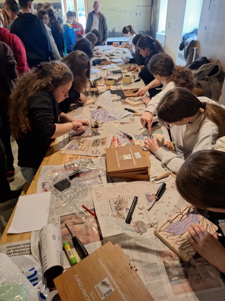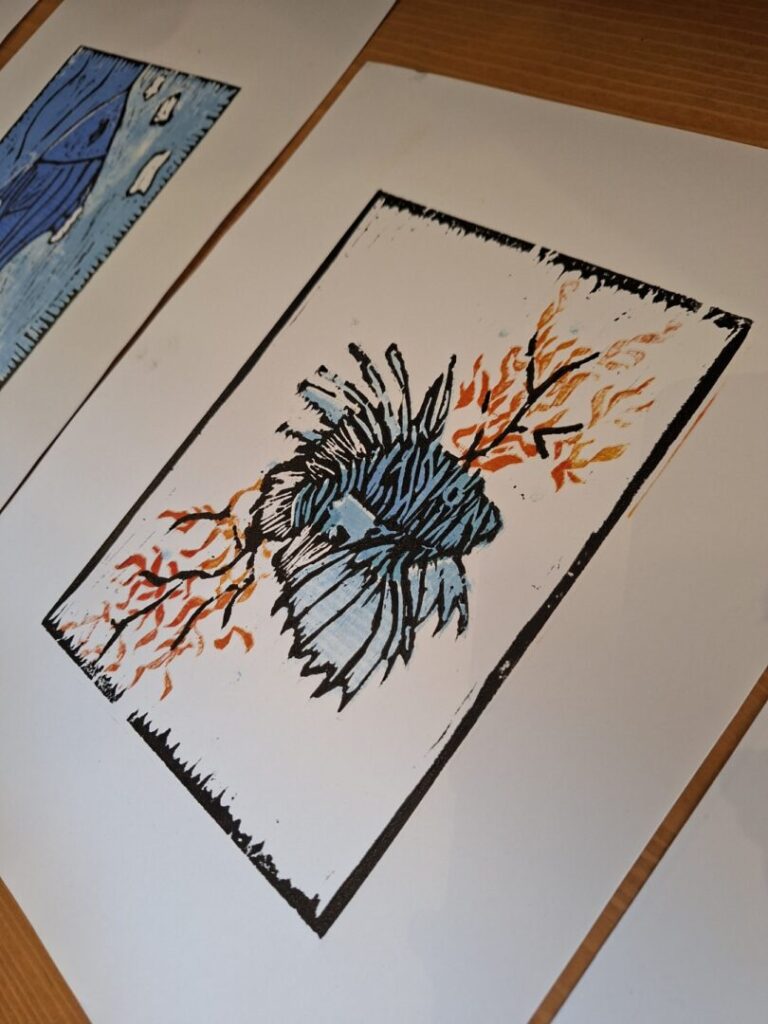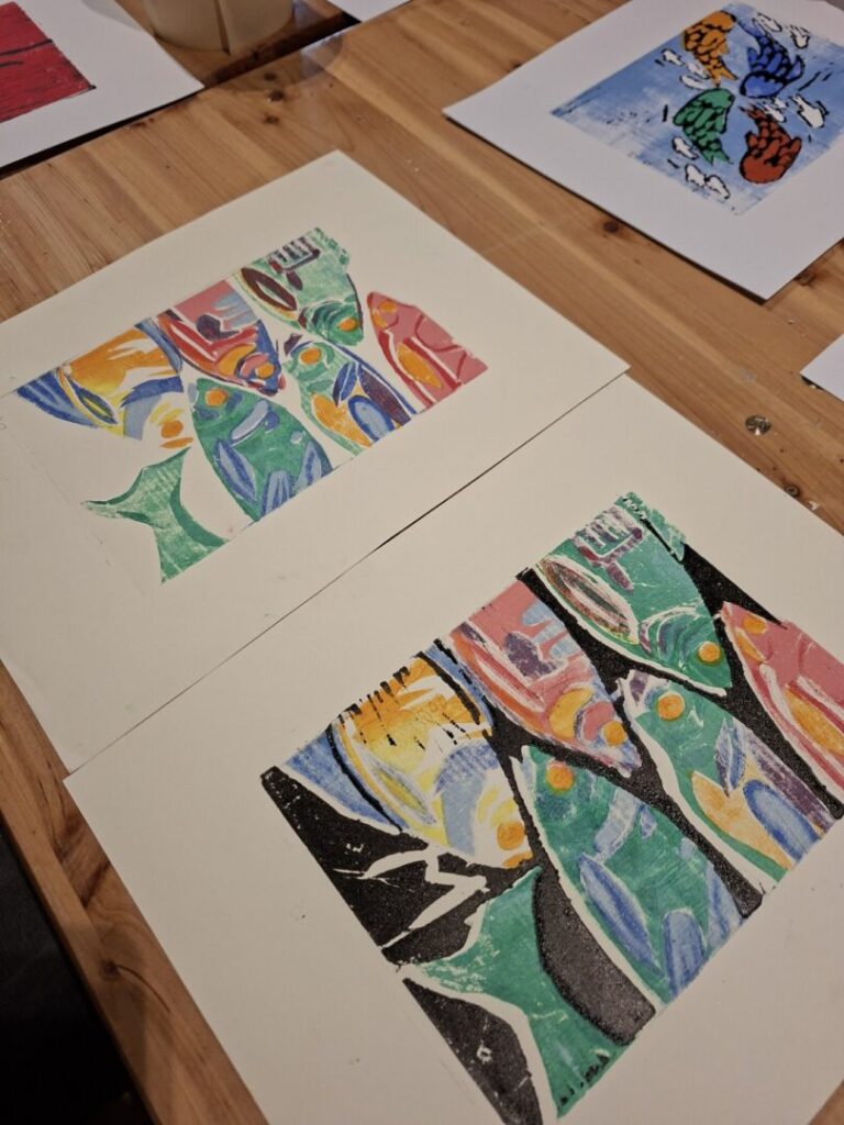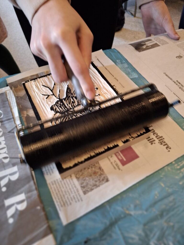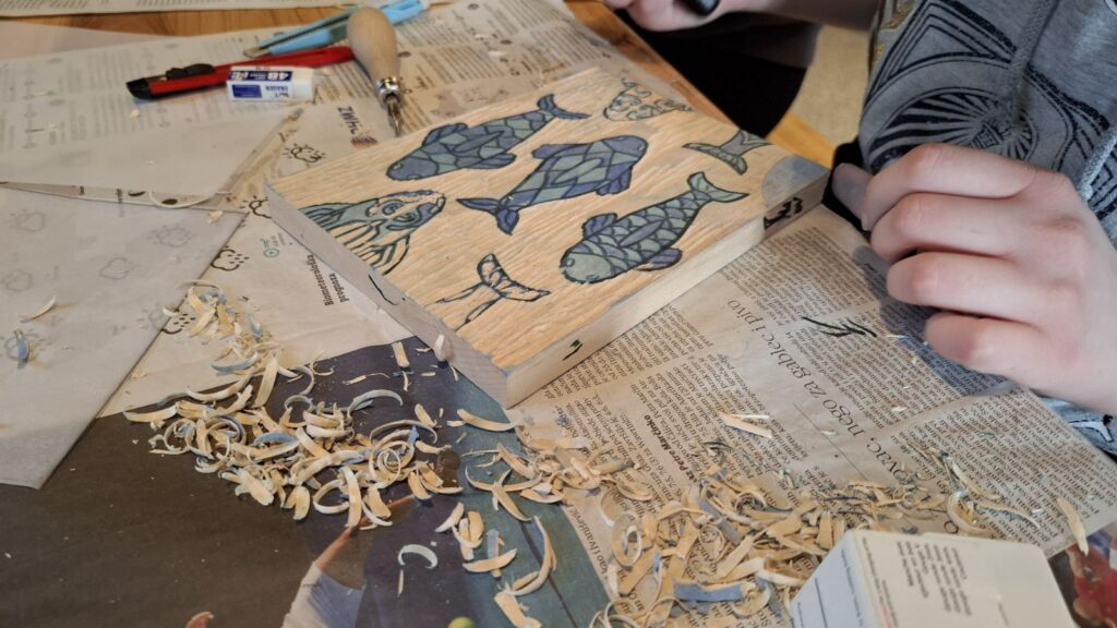 Ova grafička tehnika visokog tiska nije jednostavna i lagana, ali je vrlo zanimljiva i nudi puno mogućnosti eksperimentiranja. Većina učenika prvi put je na radionici, ali pokazali su veliko umijeće rada sa novim materijalima i što je najvažnije, iznimnu volju, želju i upornost da svoje skice realiziraju onako kako su zamislili, što nije bilo nimalo lako. U vrlo veseloj i radnoj atmosferi na kraju se doslovno tražila daščica više.